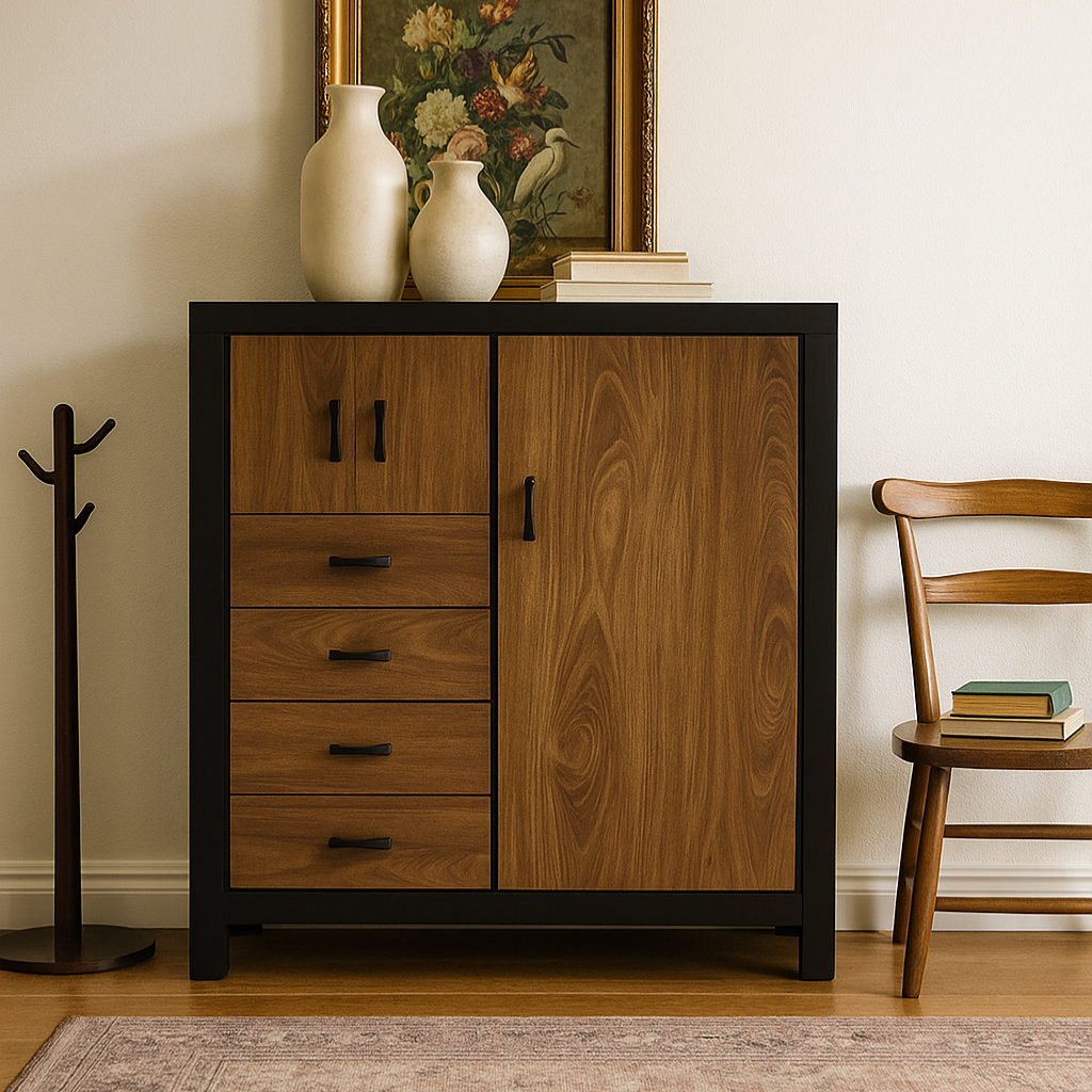 Aprovecha al máximo el espacio de tu habitación y ten donde acomodar tu ropa con la Cómoda Litzy Mod. MARIETHA Color Nogal