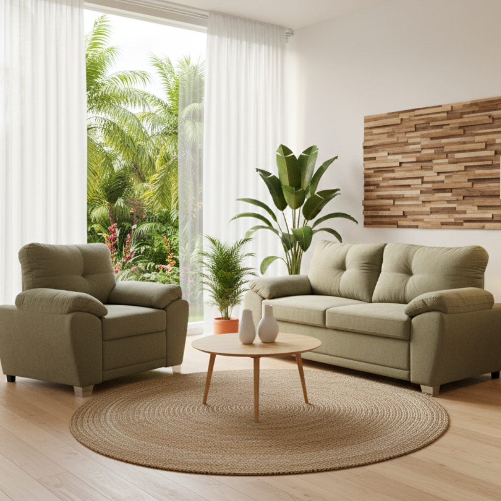 Dale un nuevo aire a tu hogar con la Sala Romo Oasis en presentación 3-2-1, ideal para crear un ambiente acogedor, moderno y lleno de estilo. Su elegante color beige armoniza con cualquier tipo de decoración, aportando luz y amplitud visual a tu sala.
